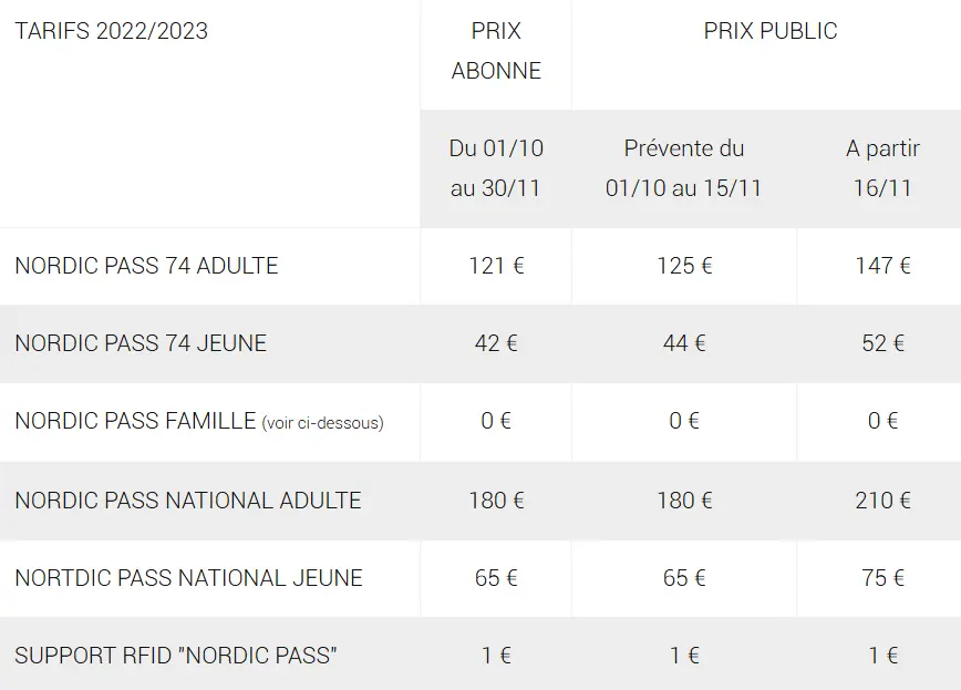 Pass famille : Pour l'achat, au sein d'une même famille de 3 pass dont au moins 1 adulte, les 4ème, 5ème... Nordic pass jeune sont offerts.